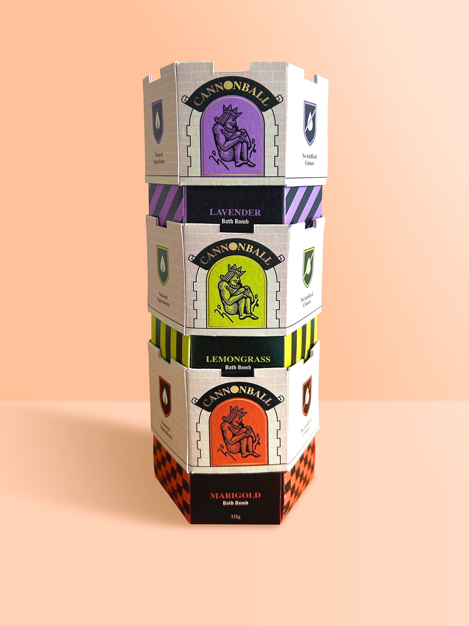 The new bath bomb brand is created to target dads, with a brand message that portray dads as kings, and kings deserve nothing less than the best. The brand—Cannonball, plays with its dual meanings:
