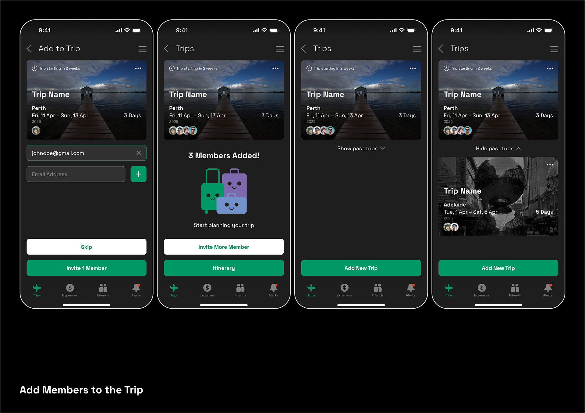 Thrivel takes care of all the pain of planning a trip, so that users can focus on what’s important—enjoying their trip. The name Thrivel is derived from Thrift / Thrive + Travel. The logo is inspired by pie-chart (expenses) and map (travel), with a letter ‘T’ in its negative space.